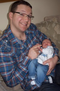 I probably shouldn’t admit this, but I had always secretly thought that newborns looked a bit like prawns. I could never understand when people said “Oh he’s got his daddy’s nose” or “Gosh – he’s got your eyes mummy” – to me they all just looked the same. Everyone’s been telling me little F is Rod’s double – and I’m happy to believe them, although I never saw it myself… Until now. I have just found this photo, I think I took it a few days ago, and look at the smiles! I stand corrected – he is his father’s son!